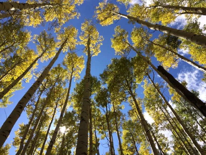 The rains of the past week had magically cleared with the gift of a sunny and mildly warm day. The yellow leaves of the aspens danced above, before the blue sky. The sounds of the leaves always different this time of year. Their rattle speaking about being: being between life and death, between holding on and letting go, between sky and earth. Living partly in two different states of being, speaks of confusion as well as wisdom and perspective. The columns of white trunks usher me deeper into the woods. I feel their presence with me, I am never alone. Some trunks are marked, wounds or natural scars, often feeling like the eyes of the tree looking and meeting me just as I meet them. Some carved into with messages of the love of a couple or the desired marking of existence through etching a name, all for the tree to endure and eventually absorb. The density of the groove encourages more peace, more awe. And the vistas through the landscape reveals awareness, perspective and the worlds of man and nature together.